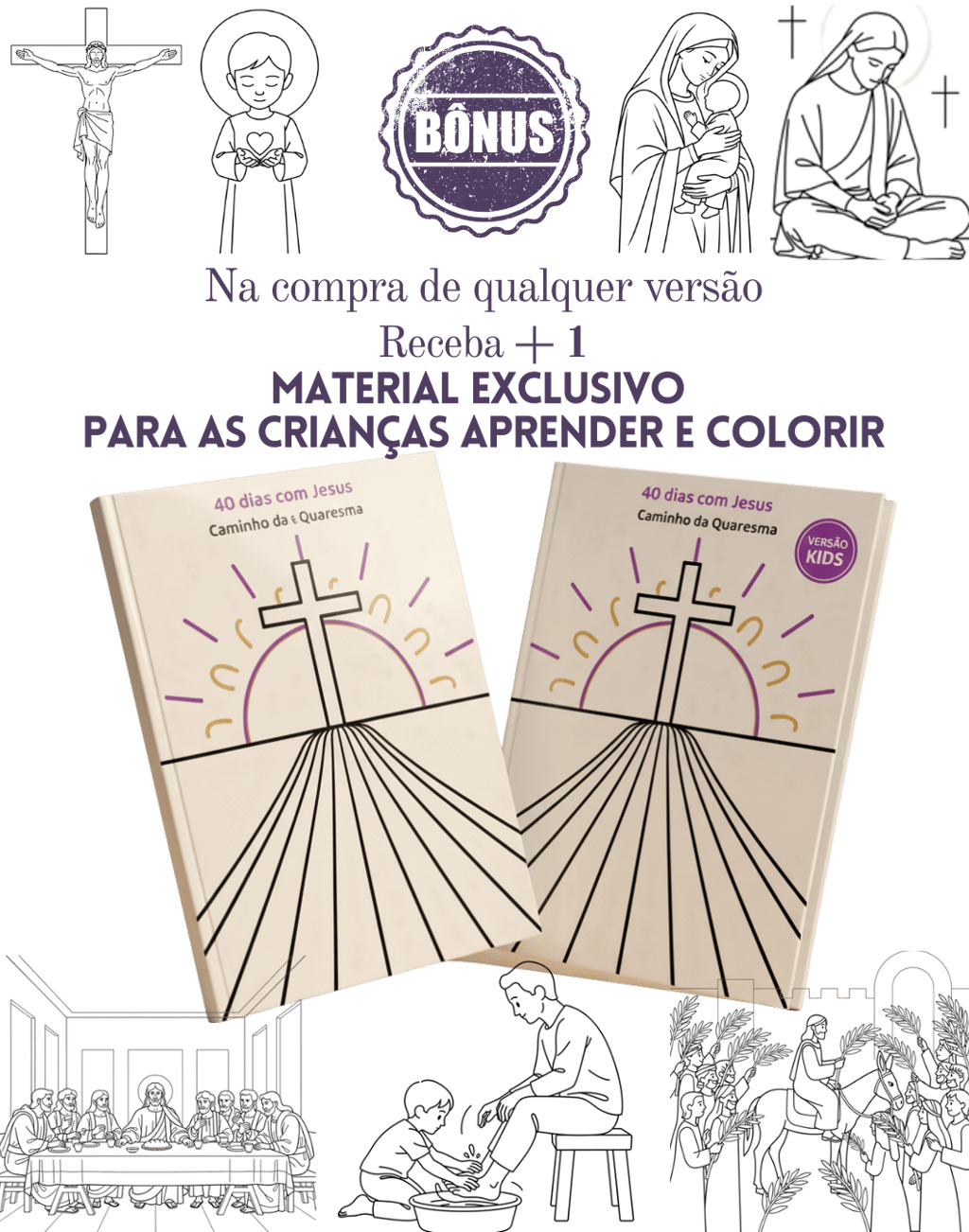 Ao longo das páginas, você encontrará reflexões que tocam o coração, direcionamentos concretos para transformar sua rotina espiritual e orientações seguras para caminhar rumo à Páscoa com mais consciência e entrega.